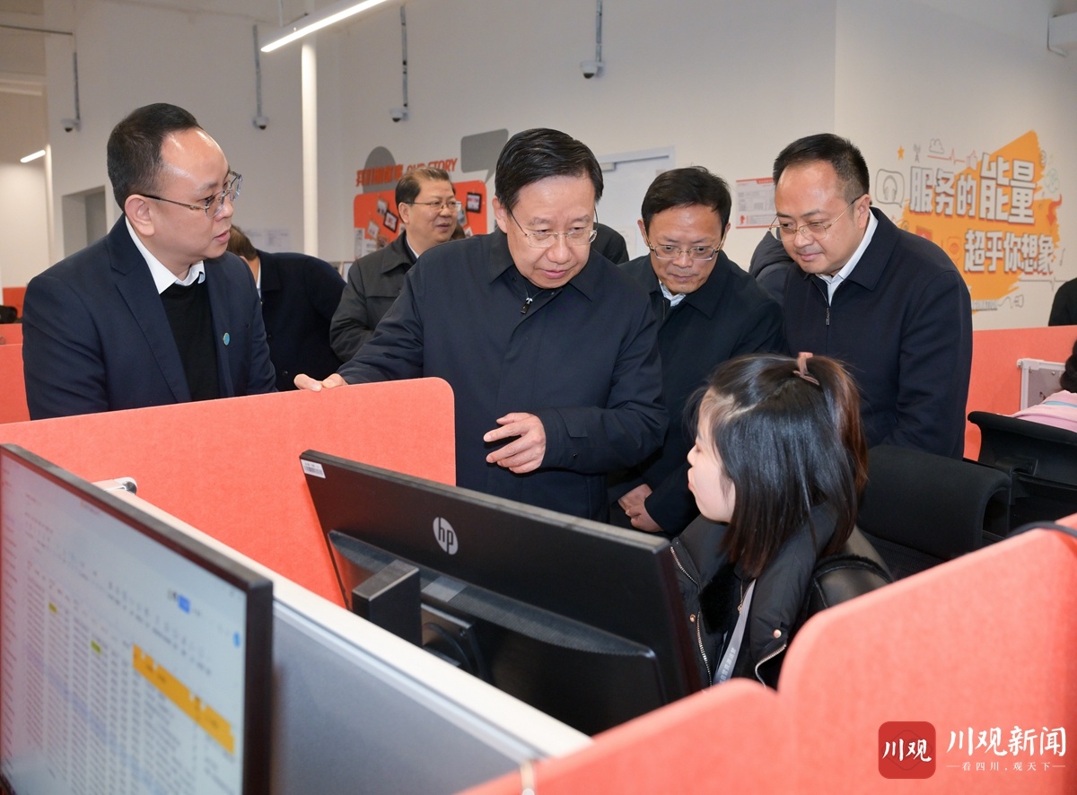 2月19日,省委书记、省人大常委会主任王晓晖到苍溪县杭广东西部协作数字产业园调研,察看农特产品电商直播间、客户服务中心等场景业态,了解线上线下联动销售助农增收等情况。