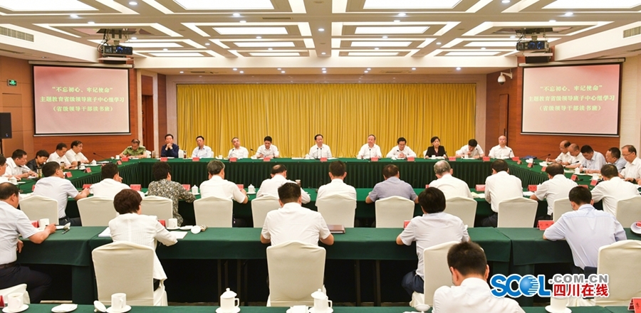四川在线消息(记者 张守帅 摄影 欧阳杰) 6月10日至14日,我省举行“不忘初心、牢记使命”主题教育省级领导班子中心组学习(省级领导干部读书班)。省委书记、省人大常委会主任彭清华全程参与学习并作讲话。他强调,深入学习贯彻习近平新时代中国特色社会主义思想,是“不忘初心、牢记使命”主题教育最突出的主线,也是首要任务。省级领导班子和领导干部要发挥示范表率作用,带头学深悟透习近平新时代中国特色社会主义思想和习近平总书记对四川工作系列重要指示精神,真正学出坚定信念、学出绝对忠诚、学出使命担当,切实增强理论素养,进一步提高运用理论分析问题、解决问题的能力。