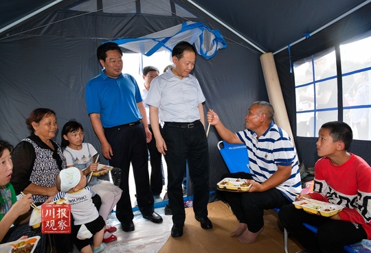 彭清华到珙县巡场镇金河新区集中安置点,与受灾群众亲切交谈,了解受灾情况和过渡安置期间具体困难。