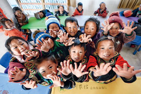 增强健康意识,养成良好卫生习惯,要从娃娃抓起。图为凉山州昭觉县四开乡洒瓦洛且博村幼教点,小朋友们展示自己干净的小手。 杨树/摄