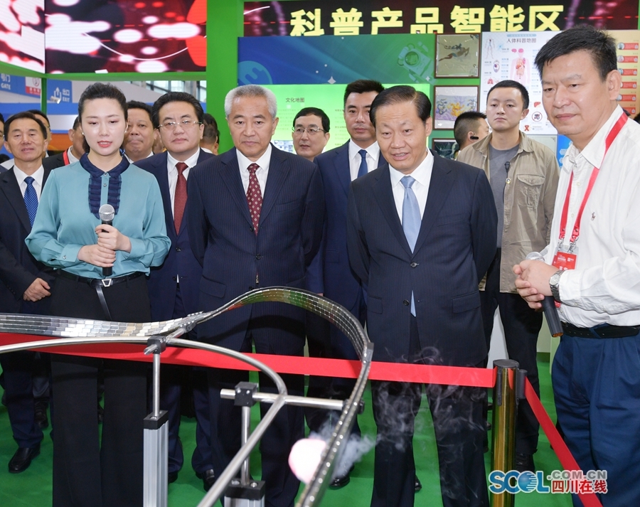 9月5日,全国政协副主席邵鸿,省委书记、省人大常委会主任彭清华及参会嘉宾参观科博会展馆,了解科技创新成果和转化应用情况。四川在线记者 欧阳杰 摄