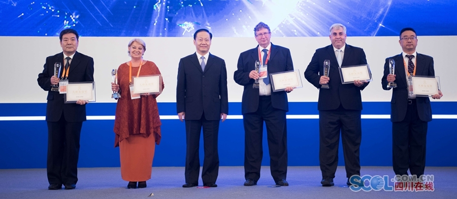彭清华书记为2019年“天府友谊奖”获得者及代表颁奖。