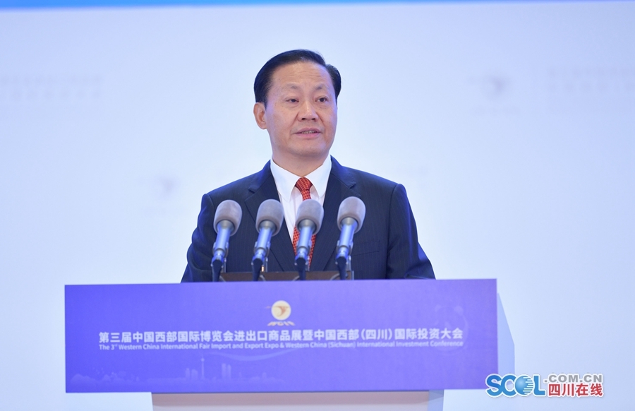 四川在线消息(记者 张守帅 唐泽文 摄影 欧阳杰)9月20日上午,以“开放创新·合作共赢”为主题的第三届中国西部国际博览会进出口商品展暨中国西部(四川)国际投资大会在成都开幕。全国人大常委会原副委员长陈昌智出席开幕式并宣布开幕。省委书记、省人大常委会主任彭清华,中国侨联顾问、中国华侨公益基金会理事长乔卫,国际商会世界商会联合会副主席、中国国际商会秘书长于健龙分别致辞。省委副书记、省长尹力主持开幕式。省委副书记邓小刚出席。