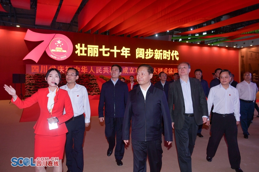 彭清华尹力柯尊平等省领导参观四川省庆祝新中国成立70周年大型成就展
