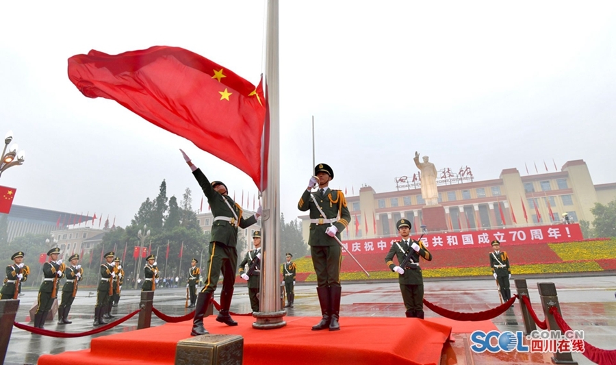 四川省隆重举行庆祝中华人民共和国成立70周年升国旗仪式