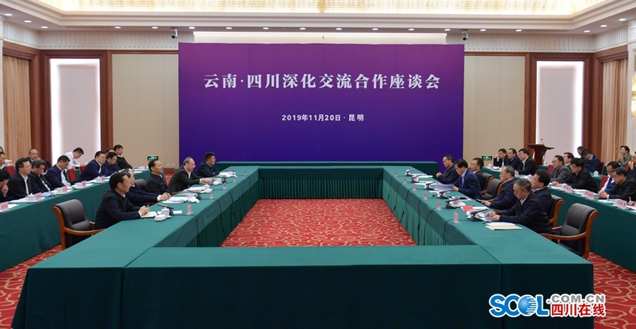 四川在线消息(记者 张守帅 摄影 欧阳杰)在贵州省考察学习后,11月19日晚,省委书记、省人大常委会主任彭清华,省委副书记、省长尹力率四川省党政代表团抵云南省考察学习。20日上午,云南·四川深化交流合作座谈会在昆明市举行,云南省委书记、省人大常委会主任陈豪主持并讲话,彭清华出席并讲话,尹力和云南省委副书记、省长阮成发分别介绍了两省经济社会发展和双方合作情况。