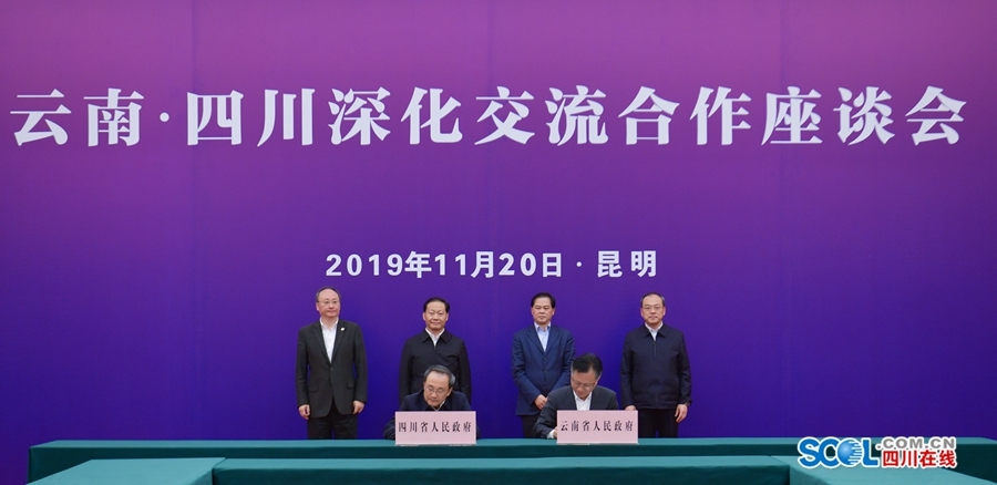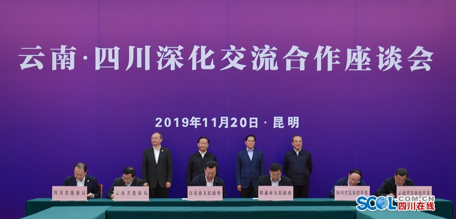 省委常委、副省长王宁与云南省委常委、副省长宗国英代表双方签署《经济社会发展合作行动计划(2019—2021年)》。自贡市与昭通市签署《携手共建“一带一路”西部陆海新通道合作框架协议》。两省发展改革委、能源局、科技厅、文化和旅游厅、中医药管理局分别签署《加快推进西部陆海新通道建设合作协议》《电力合作战略框架协议》《科技创新合作框架协议》《文化旅游合作协议(2019—2022年)》《中医药发展战略合作框架协议》。