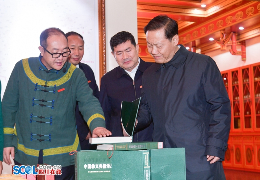 11月27日,省委书记、省人大常委会主任彭清华到西南民族大学航空港校区调研,在彝学文献馆了解彝文字演变及古籍抢救保护、整理研究、翻译出版等情况。
