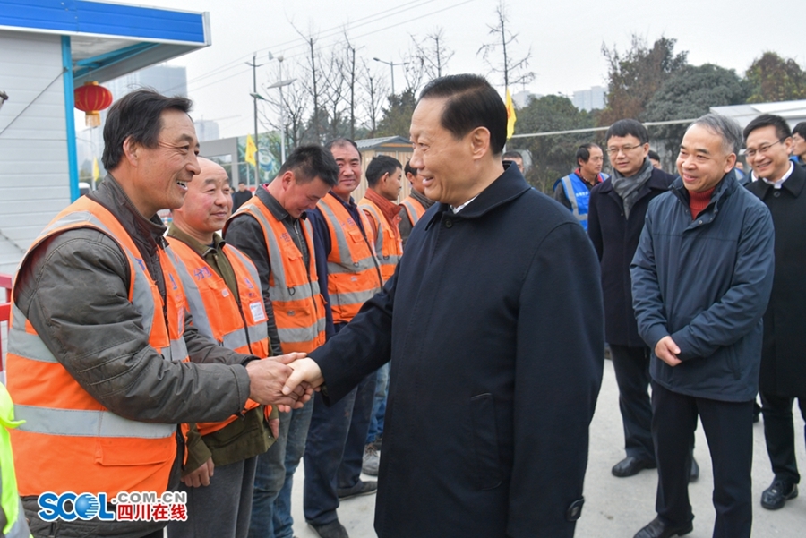 1月23日,省委书记、省人大常委会主任彭清华到成都市锦江区成龙路街道环卫工人之家,看望慰问坚守岗位的环卫工人。