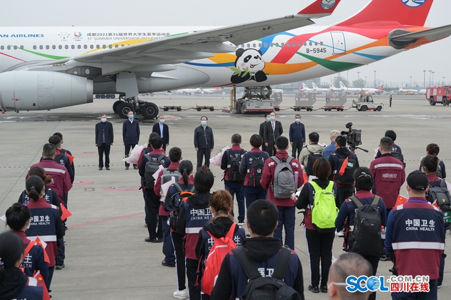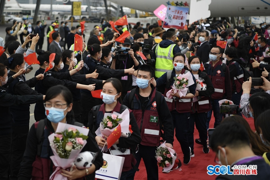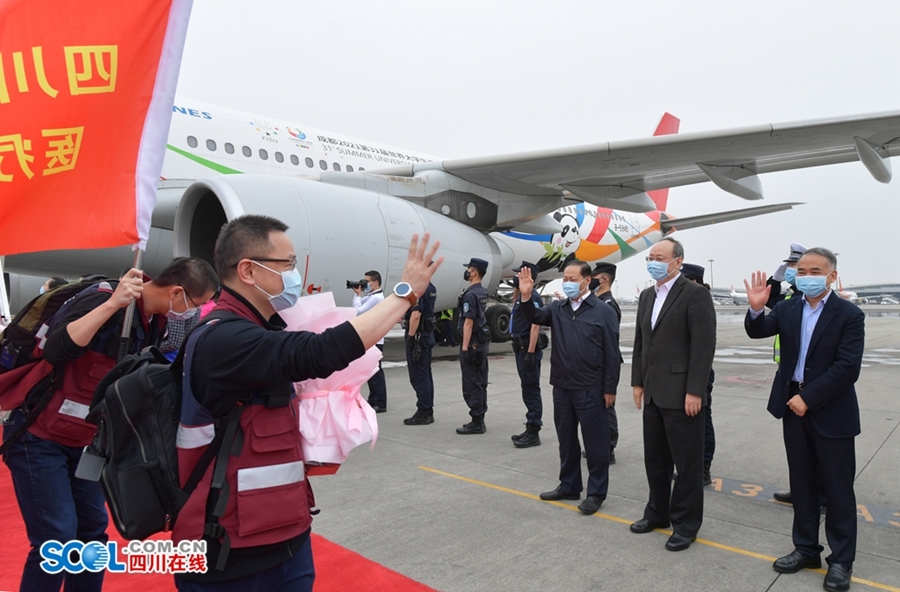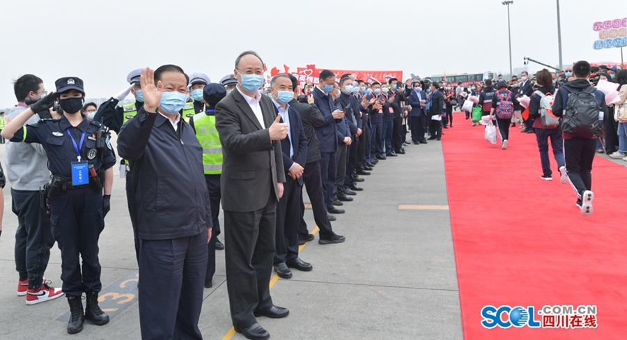 四川援湖北医疗卫生队最后一批162名队员凯旋 彭清华尹力到机场迎接