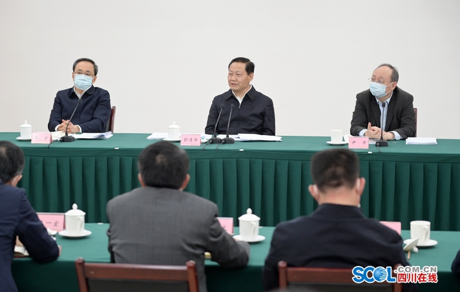 四川在线消息(记者 张守帅 摄影 欧阳杰)4月14日,省委书记彭清华前往经济和信息化厅调研,主持召开深入推进“5+1”重点产业发展专题会议并讲话。他强调,“5+1”重点产业作为我省实体经济的重要基石,在全省经济发展中具有举足轻重的地位和作用。要坚决落实习近平总书记关于统筹推进疫情防控和经济社会发展的重要讲话精神,保持战略定力、增强危机意识,始终把构建“5+1”现代工业体系牢牢抓在手中,把握疫情倒逼产业转型升级的机遇,以供给侧结构性改革为主线,以培育特色优势产业和战略性新兴产业为主攻方向,推动支柱产业不断壮大、细分领域加快突破、数字经济跨越发展,力争把疫情造成的损失降到最低,为实现全年主要目标任务、推动四川高质量发展奠定坚实支撑。