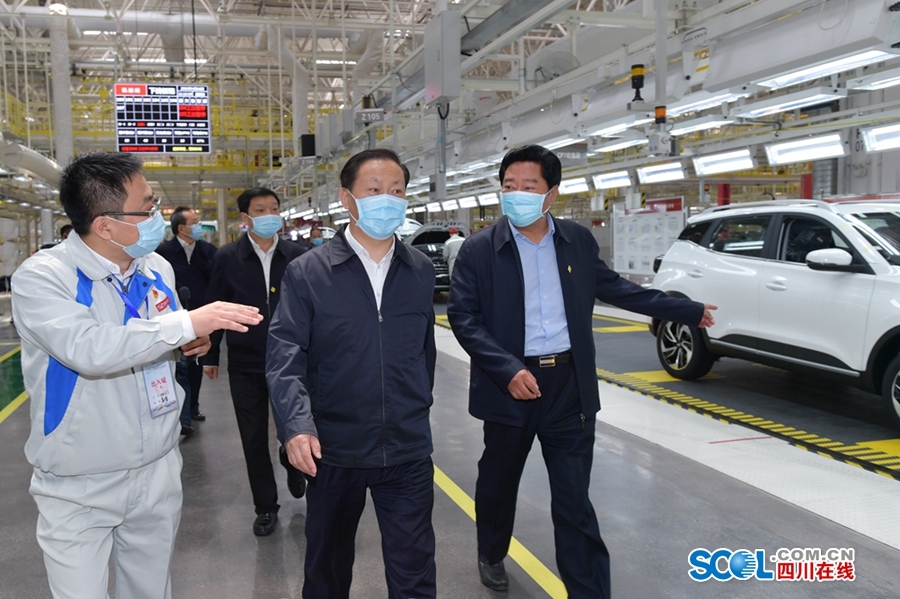 4月26日,省委书记彭清华到宜宾三江新区汽车产业园凯翼汽车公司调研,在总装车间察看自动化总装生产线运行情况。