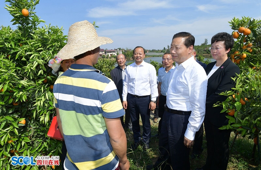 4月27日,省委书记彭清华到内江市资中县银山镇老场村血橙培育基地调研,与正在果园采摘的村民亲切交谈,询问了解农业园区建设、特色产业发展、巩固脱贫攻坚成果等情况。