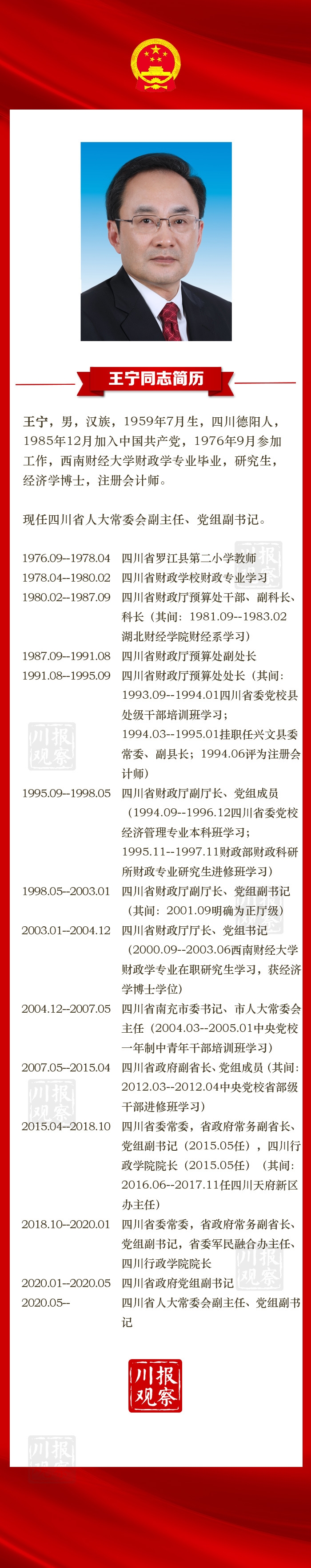 王宁、王铭晖当选为四川省人大常委会副主任(照片、简历)