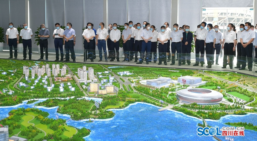 6月3日,与会代表在成都参观考察大运会体育中心主会场场馆建设推进情况。