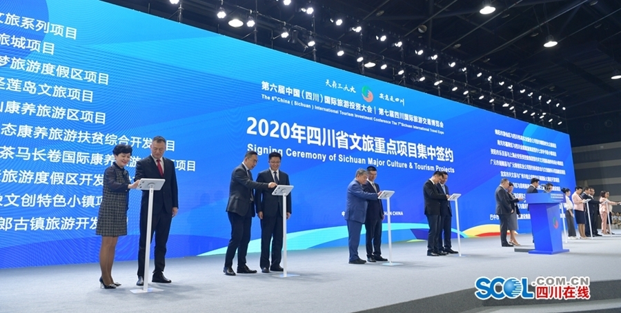 我省20个国际友城也通过视频形式向大会开幕表示祝贺,文化和旅游部产业发展司司长高政、融创中国控股有限公司董事会主席孙宏斌在现场致辞。开幕式上还举行了2020年四川省优秀文旅重点投资项目推介、79个重大文旅项目集中签约、“智游天府”文化和旅游公共服务平台上线活动。