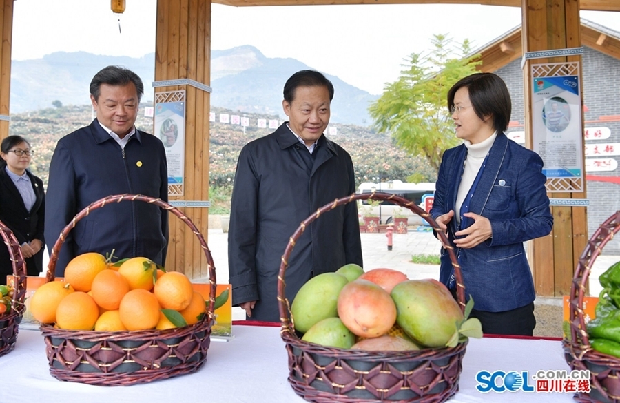 2020年12月10日,省委书记彭清华到攀枝花市米易县草场镇龙华村调研,观看当地优质特色农产品,了解建设现代农业园区带动群众增收致富情况。