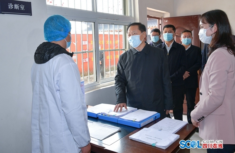 2月7日,省委书记彭清华到安岳县兴隆镇金龙村调研,在村卫生室了解镇村分级分类做好返乡农民工疫情防控和服务等工作情况。