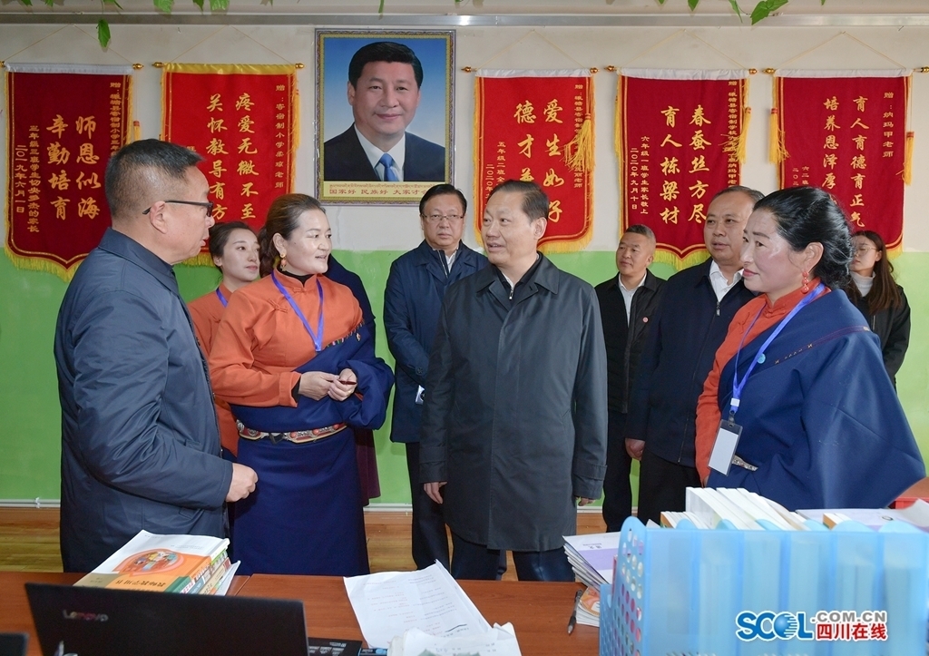 ▲4月28日,省委书记彭清华到壤塘县寄宿制小学调研,详细询问师资队伍建设、教学质效提升、国家通用语言文字教学推行等情况。