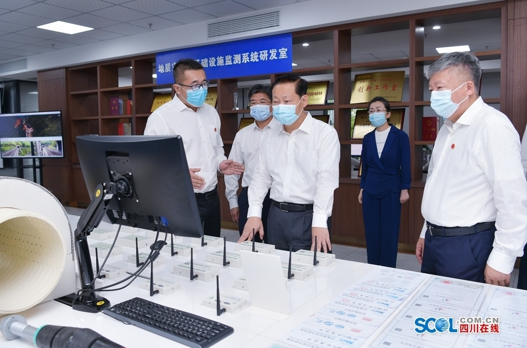 中铁二院是我国铁路建设的“国家队”,在勘察设计、技术研发、规划咨询等方面实力雄厚。调研中,彭清华来到中铁二院数字轨道交通技术研究与应用国家地方联合工程研究中心、地质灾害与基础设施监测预警系统实验室,询问了解该院发展历程、优势领域,观看自主研发的“铁路三维实景踏勘”系统演示,察看低功耗传感器、自组网通信设备等研究成果展示,了解依托云计算、大数据等技术手段,开展轨道交通工程“设计—施工—运维”全周期数字化研发创新及保障高铁安全运营预警监控系统研发应用等情况。随后,彭清华主持召开省委专题会议,分别听取中铁二院、省铁路机场办、成都市、蜀道集团关于全省铁路建设项目推进情况,以及成都都市圈市域铁路建设进展情况汇报。