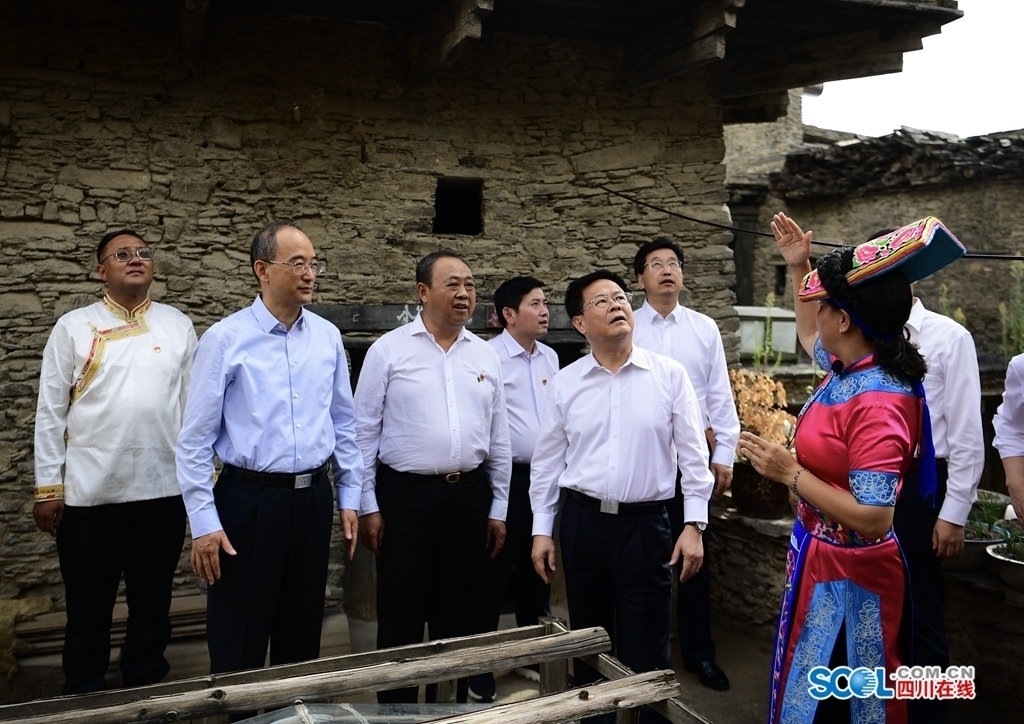 9月3日,黄强陪同郑栅洁率领的浙江省代表团一行在理县桃坪镇桃坪羌寨,考察文旅结合发展情况。