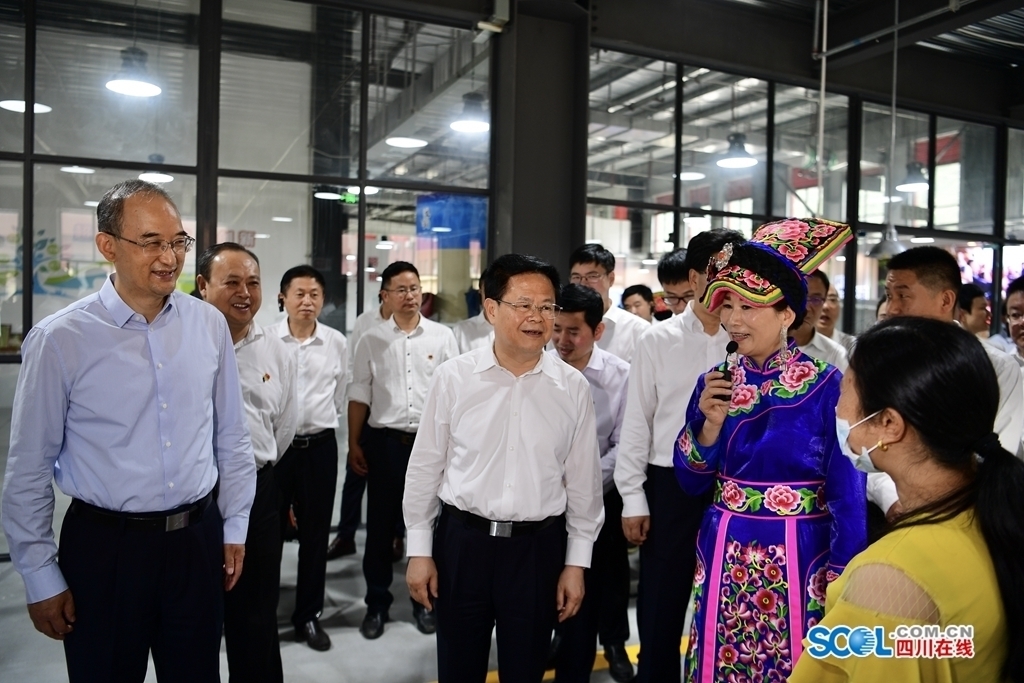 黄强陪同郑栅洁率领的浙江省代表团一行在汶川县七盘沟来料加工总部园,考察浙江省对口支援项目。