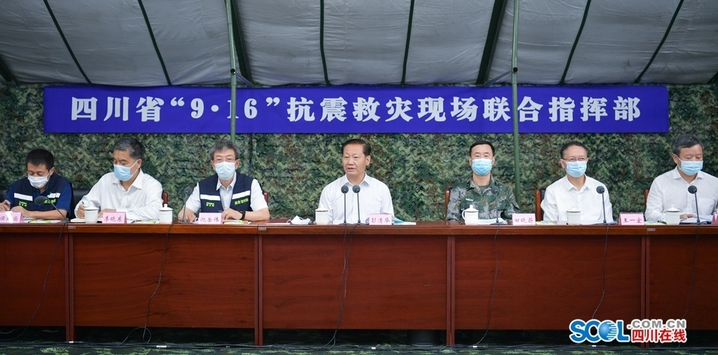11时许,彭清华在抗震救灾现场联合指挥部主持召开专题会议,研究抗震救灾工作。会议开始前,与会人员全体起立、向地震中遇难同胞默哀。会议听取了泸州市、应急管理厅负责同志关于灾情、抢险救灾工作等情况汇报,应急管理部工作组负责同志对做好下一步工作提出了要求。