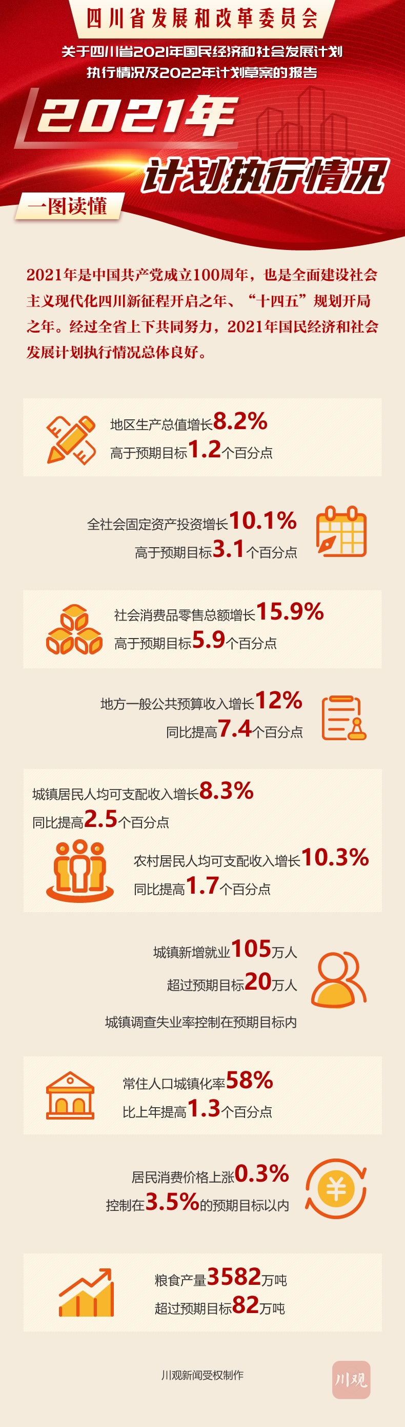 2021年是中国共产党成立100周年,是实施“十四五”规划、全面建设社会主义现代化四川新征程的第一年。疫情防控、成渝地区双城经济圈建设、创新驱动发展、两项改革“后半篇”文章、碳达峰碳中和工作启动……这一年四川经济社会发展如何?