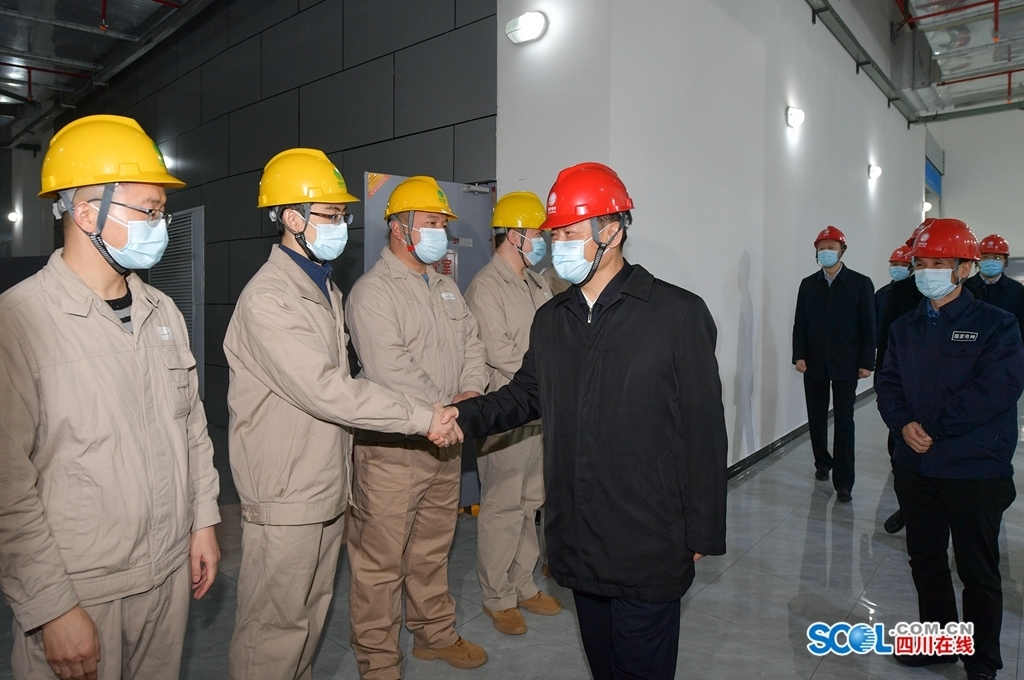 1月29日,省委书记彭清华到位于成都高新区的110千伏吉庆变电站,看望慰问变电站职工,感谢大家坚守岗位为保障经济社会正常运转的辛勤付出。