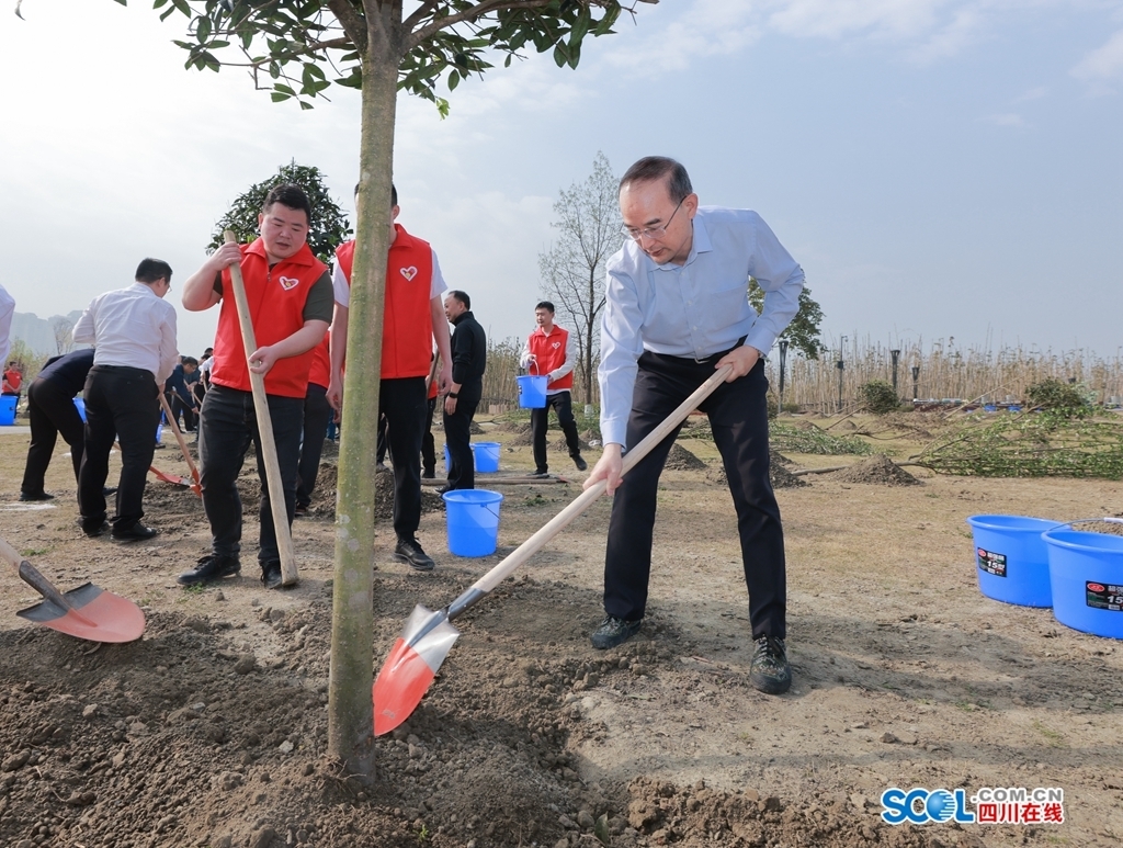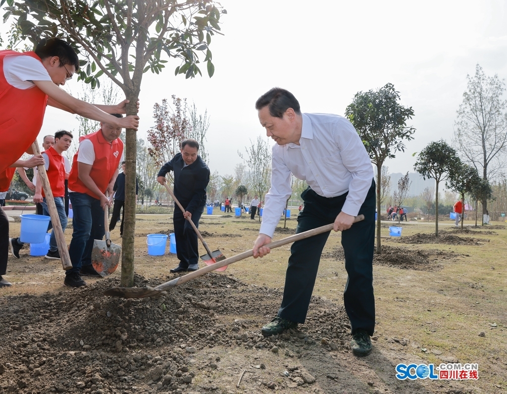 参加植树活动的还有:省委、省人大常委会、省政府、省政协有关领导,西部战区空军、省军区、武警四川省总队有关领导,成都市委、市人大常委会、市政府、市政协有关领导,省直有关部门负责同志,当地干部群众及志愿者代表等。