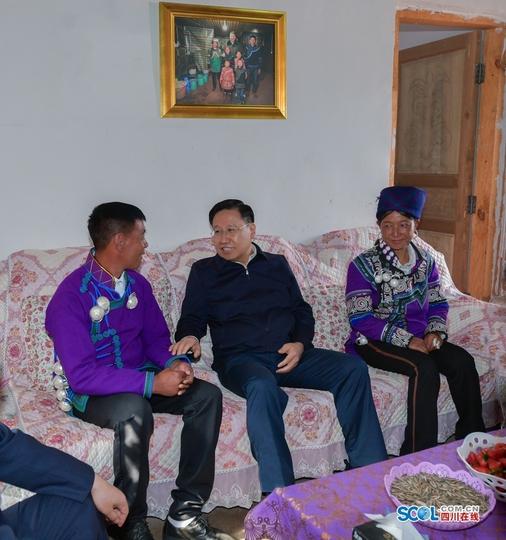 4月26日,省委书记王晓晖到凉山州昭觉县三岔河镇三河村调研。在习近平总书记看望过的村民吉好也求家中,与他们围坐一起拉家常,细致询问生产生活情况。
