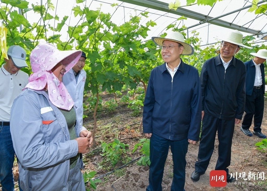 4月27日,省委书记王晓晖到西昌现代农业葡萄园调研,在葡萄种植大棚与务工群众交流,了解就业增收情况。