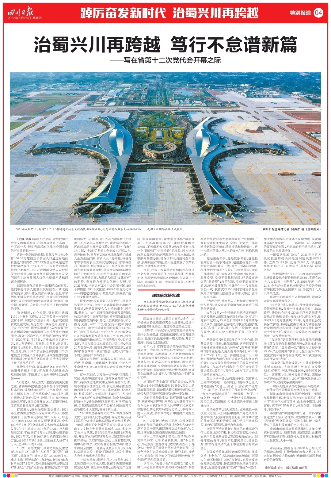 省第十二次党代会开幕之际,四川日报刊发万字宏文《治蜀兴川再跨越 笃行不怠谱新篇》