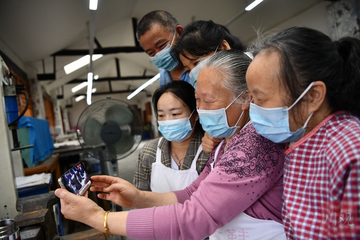 在成都市郫都区战旗村的唐昌布鞋坊,手艺传承人赖淑芳和几位村民一起用手机收看了开幕盛况,“看了大会直播,最大感受就是四川的发展会越来越好,我相信老手艺也一定会越来越受欢迎。”赖淑芳说。