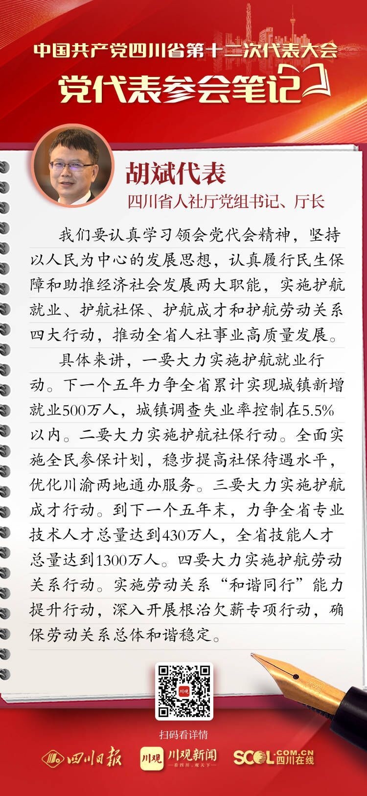 党代表参会笔记|四川省人社厅党组书记、厅长胡斌:实施就业等“四大护航行动”,推动人社事业高质量发展