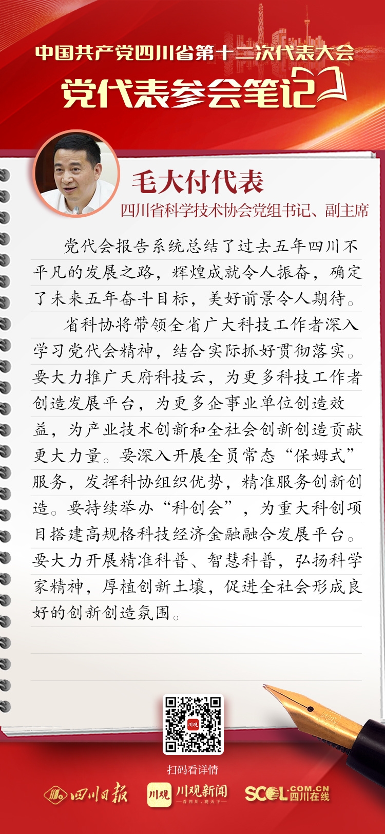 党代表参会笔记|省科协党组书记毛大付:大力推广天府科技云,为全社会创新创造贡献更大力量