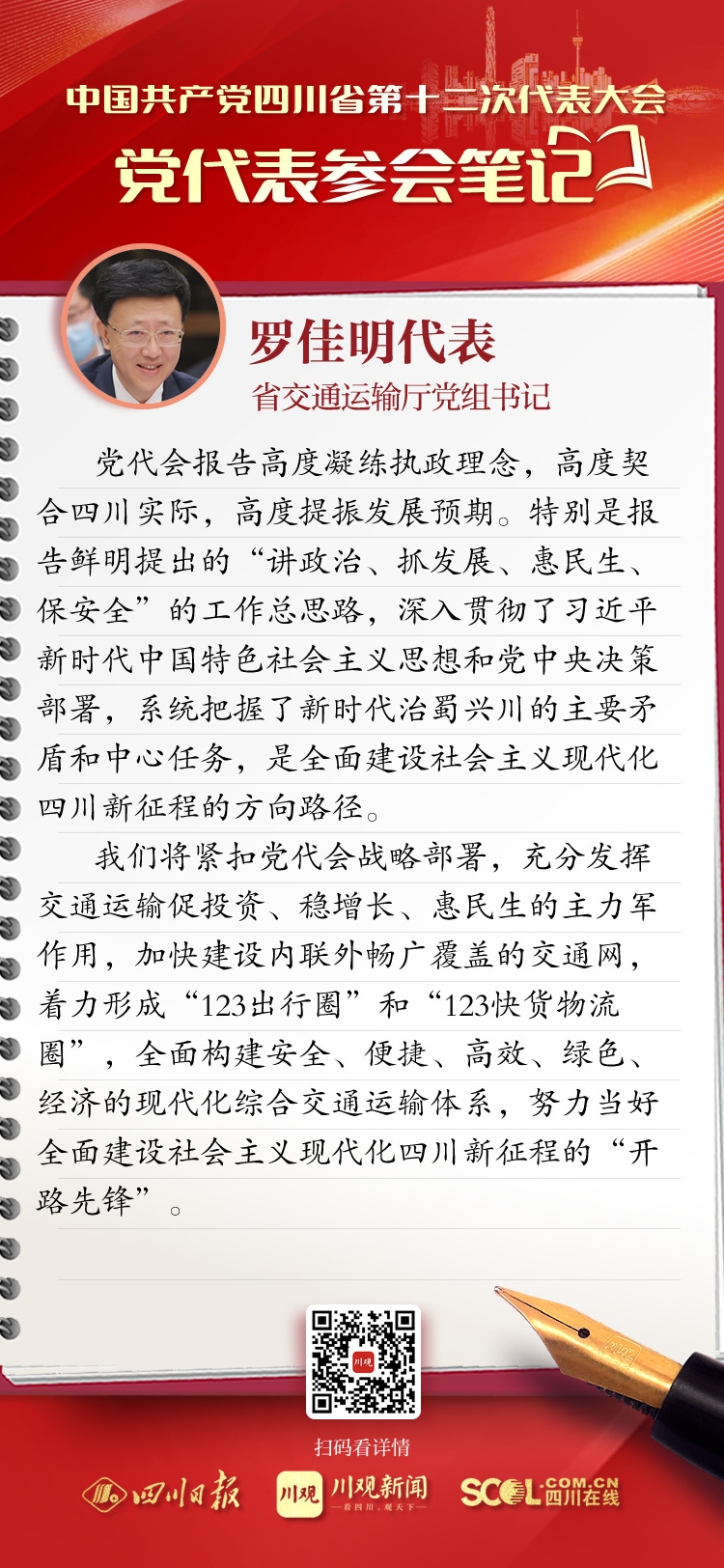 党代表参会笔记丨省交通运输厅党组书记罗佳明:勇担时代使命 当好“开路先锋”