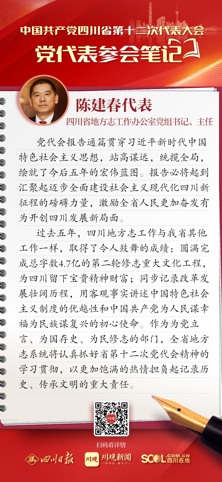 党代表参会笔记|四川省地方志工作办公室主任陈建春:以饱满热情担负起记录历史传承文明的重大责任