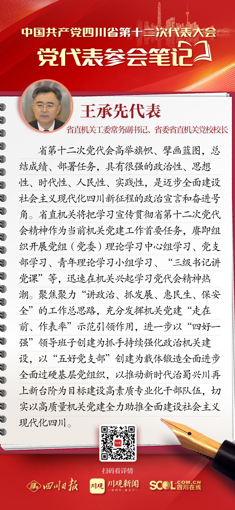 党代表参会笔记|省直机关工委常务副书记王承先:以高质量机关党建助推全面建设社会主义现代化四川