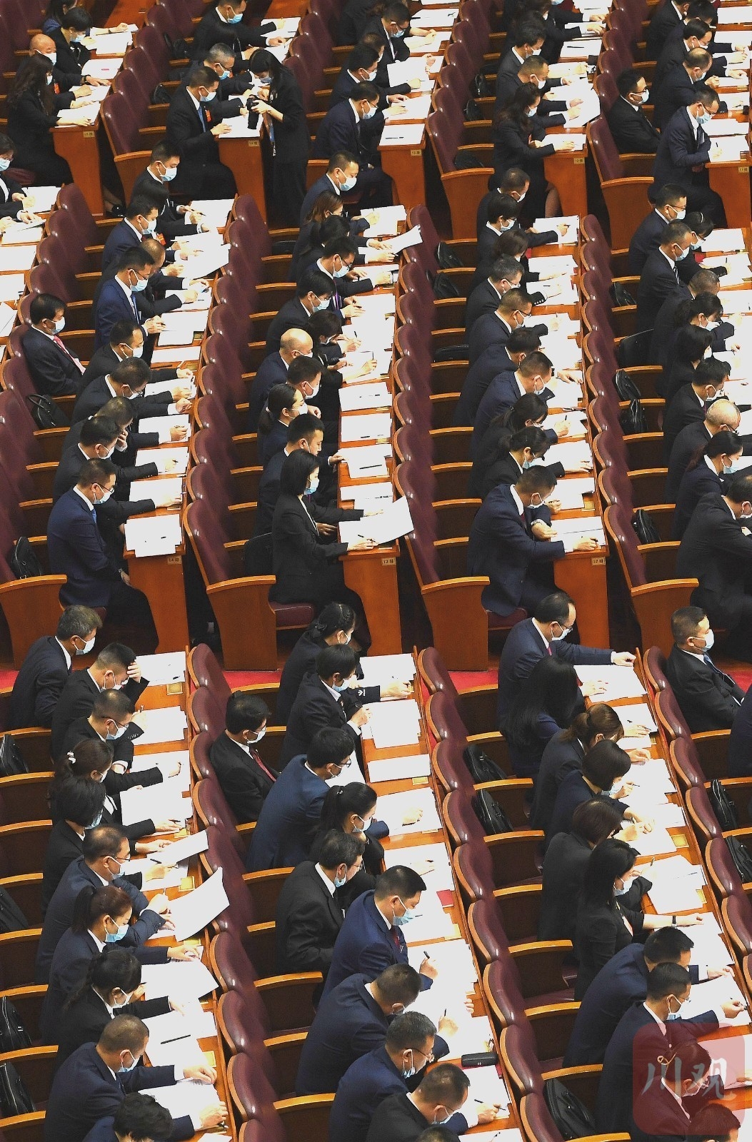 党代会开幕大会上,代表们认真听取报告。