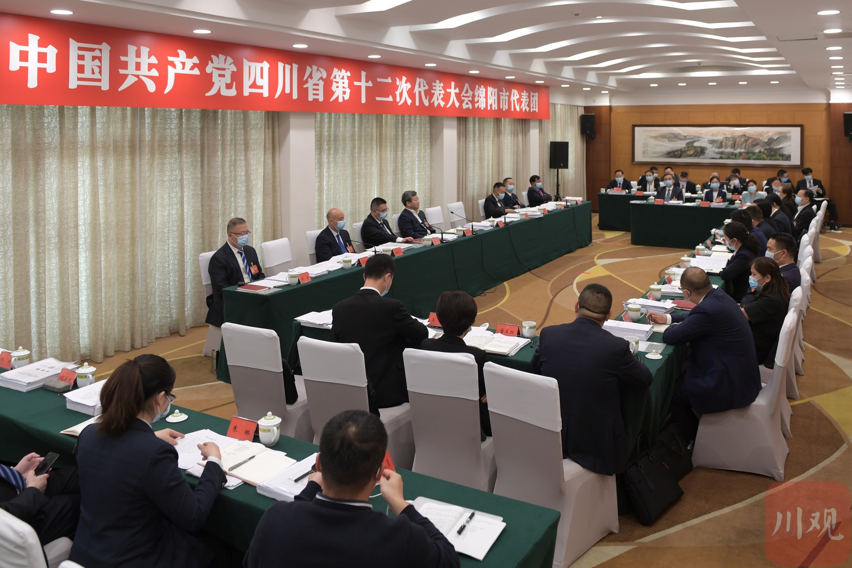图为正在举行的省第十二次党代会绵阳代表团会议现场