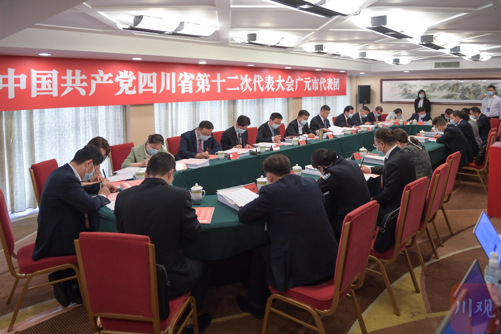 图为正在举行的省第十二次党代会广元代表团会议现场