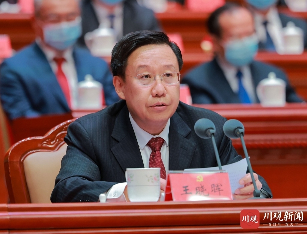 王晓晖指出,迈步新征程、谱写新篇章,必须坚持发展第一要务,坚定不移推动经济社会高质量发展。发展是解决一切问题的基础和关键,高质量发展是新发展阶段的主题。在历届省委的接续努力下,当前四川发展已经站在新的历史起点上,但发展不平衡不充分仍然是最突出的问题。要始终保持专注发展定力,紧扣立足新发展阶段、贯彻新发展理念、构建新发展格局、推动高质量发展,坚持稳中求进工作总基调,扎实抓好党代会作出的推动成渝地区双城经济圈建设、深入实施“一干多支、五区协同”“四向拓展、全域开放”战略部署等重大任务落实,全力以赴拼经济、搞建设,在保持全省经济质的稳步提升和量的合理增长上下功夫,努力跑出加速度、实现新跨越。要认真践行以人民为中心的发展思想,围绕“让人民群众过上好日子”,多谋富民之策、多办利民之事,千方百计惠民生、增福祉。要统筹发展和安全,坚决防范化解各类重大风险,推动四川现代化建设乘风破浪、行稳致远。