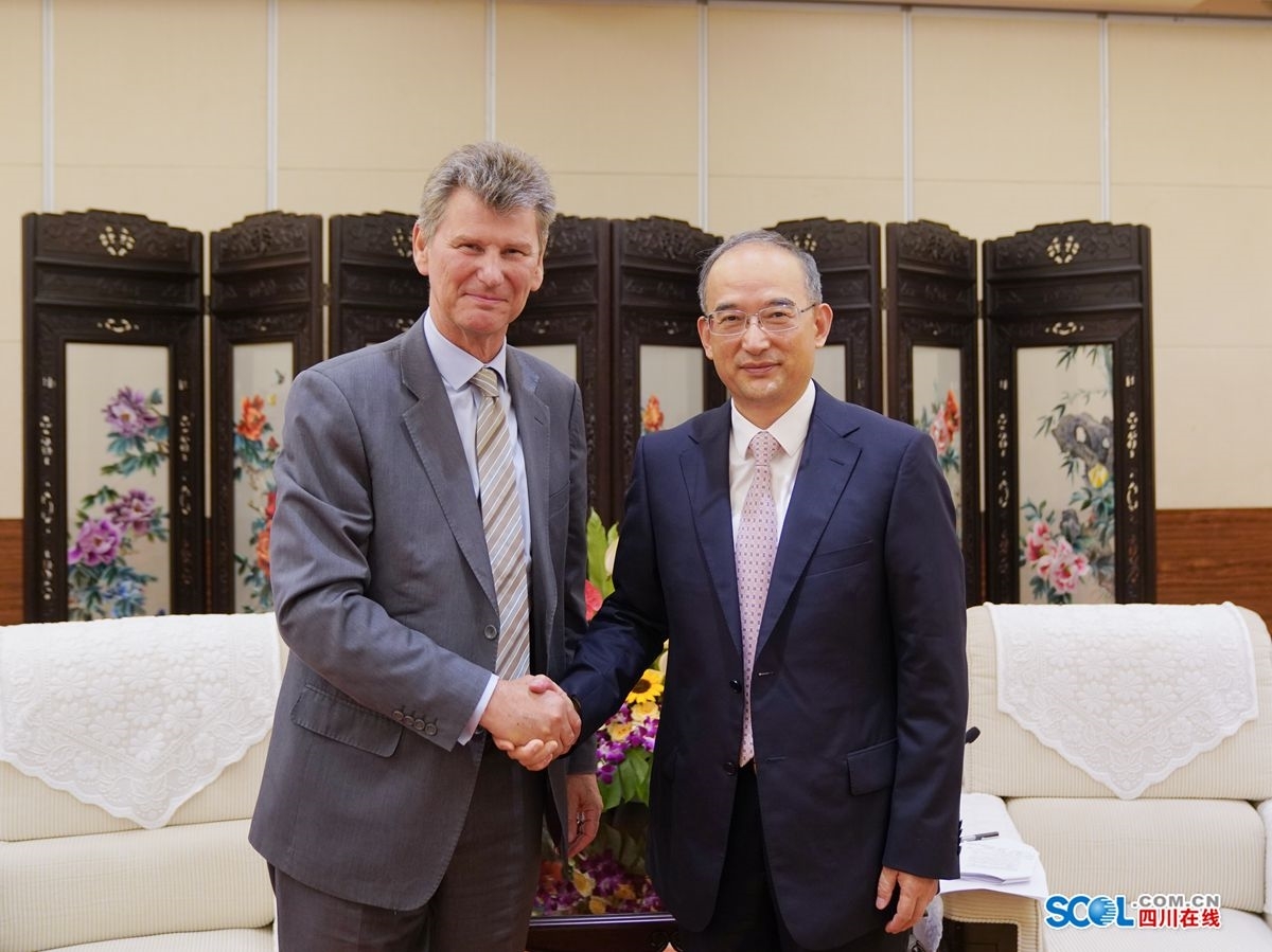 黄强对易卜雷大使来川访问表示欢迎。他说,近年来,川冰两地在经贸、教育等领域务实合作不断取得新进展。当前,四川正全力推动成渝地区双城经济圈建设国家战略乘势跃升,在综合立体交通、清洁能源、文旅资源等方面优势独特,省会成都充满魅力,发展势头强劲。川冰经济互补性很强,希望双方密切政府关系,为交流合作迈向更广领域、更高层次搭建平台;加强清洁能源开发、低碳减排技术研发应用等合作,共促绿色发展;拓展康复辅具、健康产业等合作广度深度,更好增进两地人民福祉;强化人文旅游合作,挖掘教育和科研领域合作潜力,携手实现互利共赢发展。