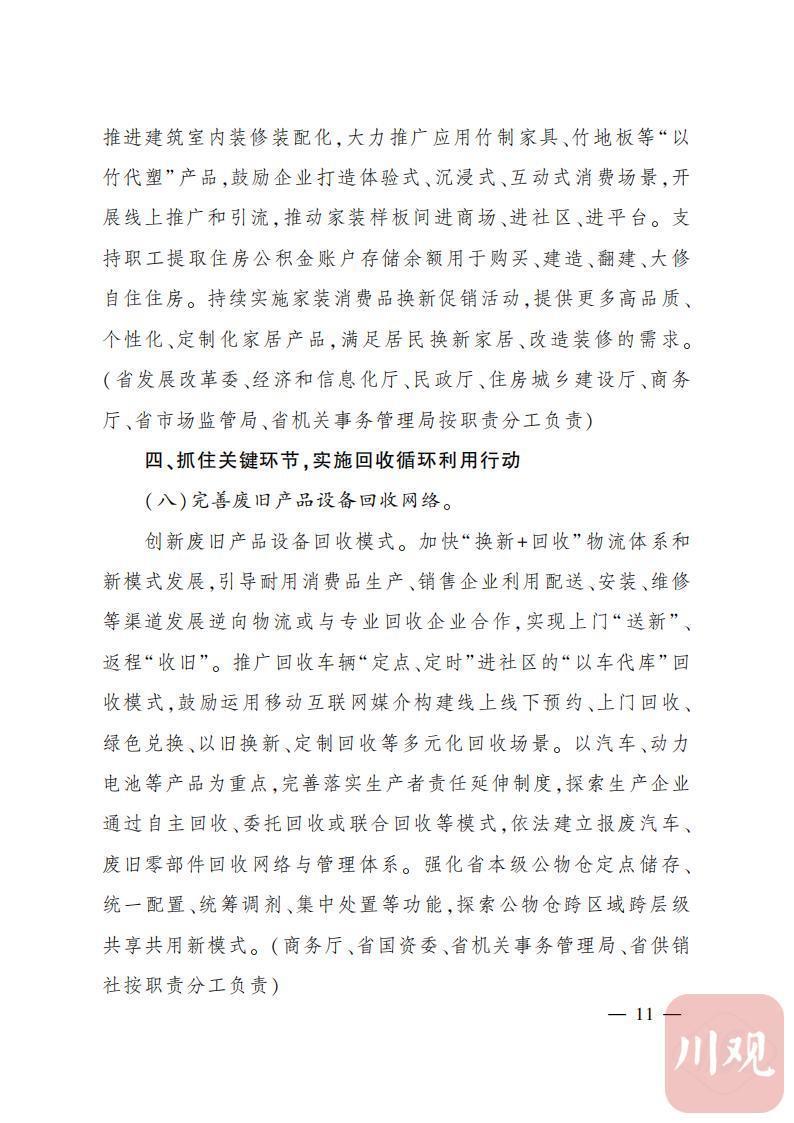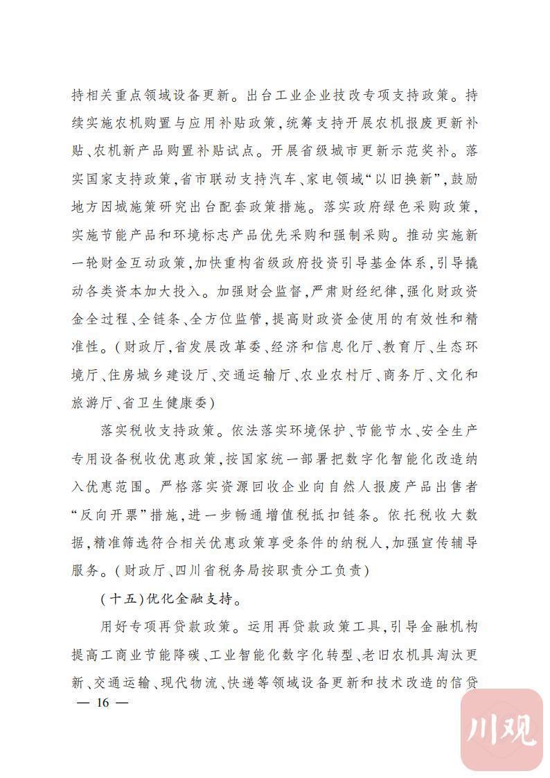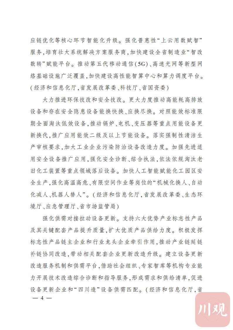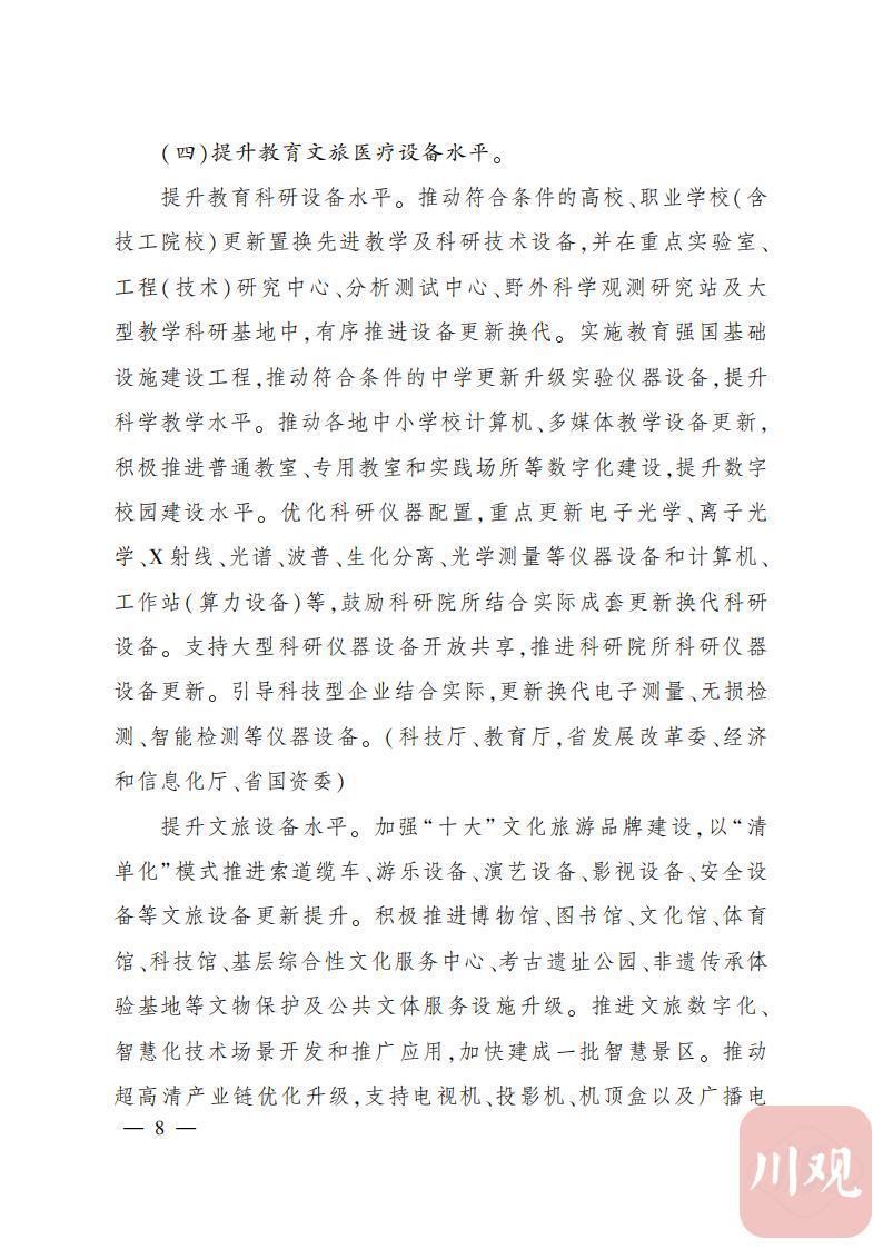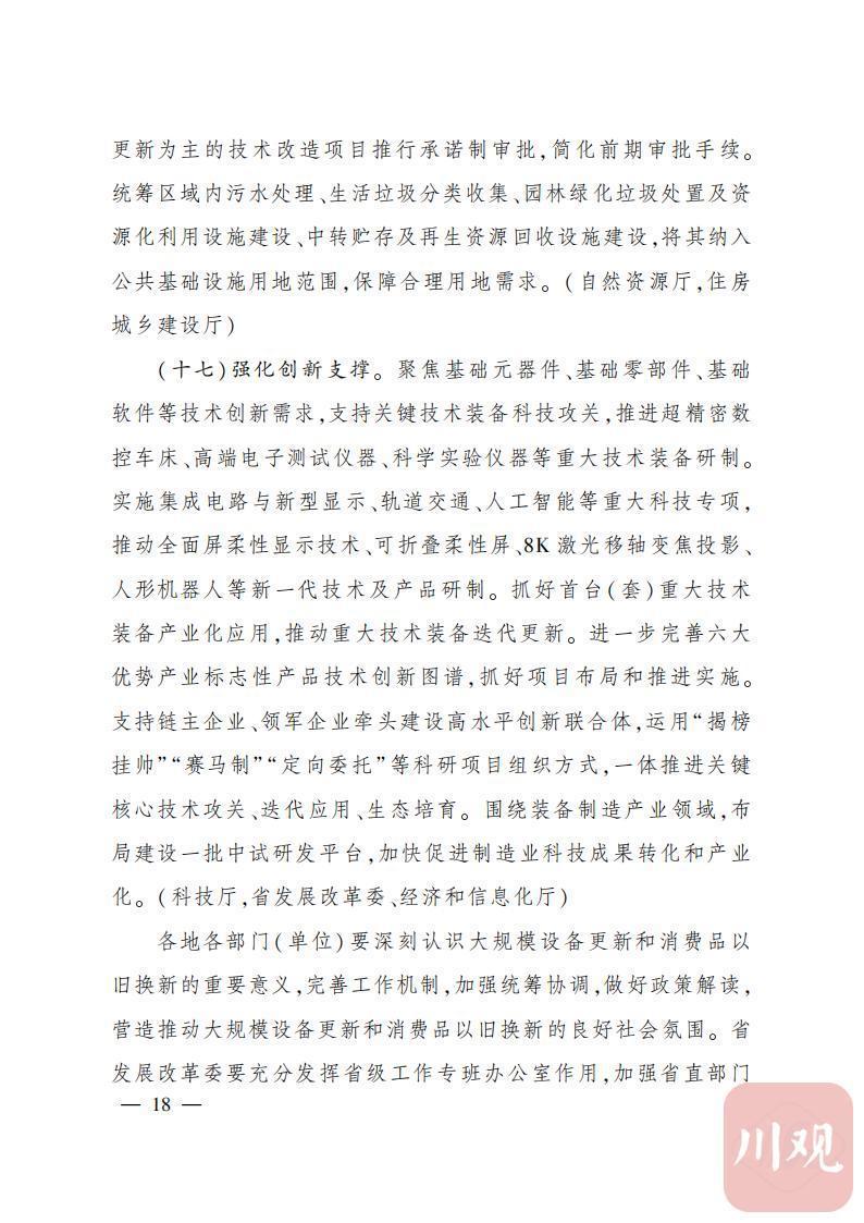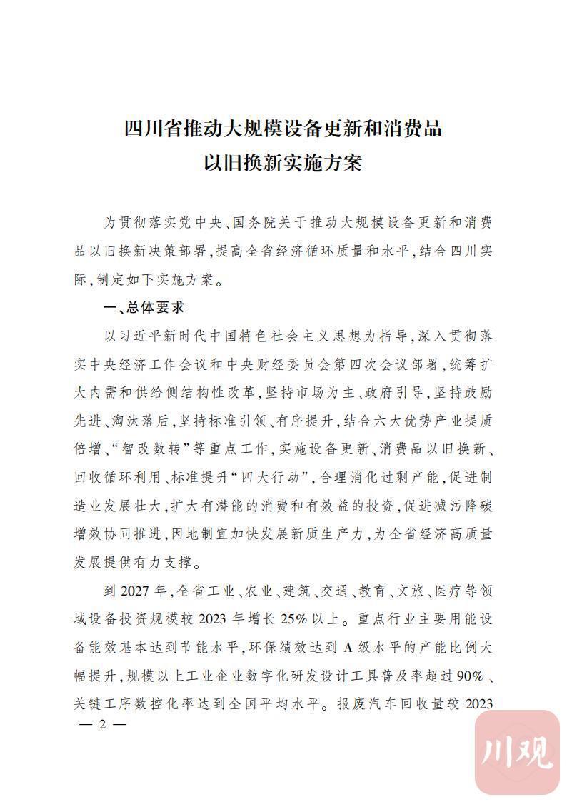 全文丨四川省推动大规模设备更新和消费品以旧换新实施方案