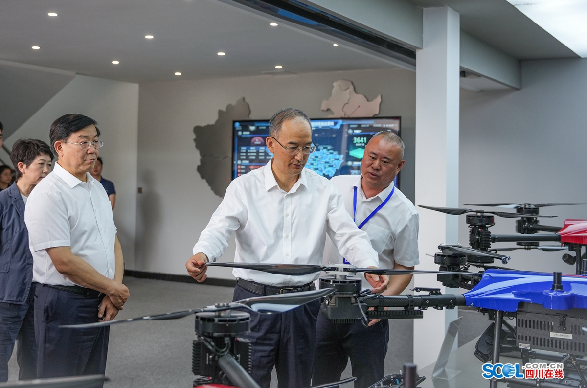 黄强在迪威弗智能装备集团了解高层灭火无人机等新型智能化应急救援设备更新和推广应用情况。