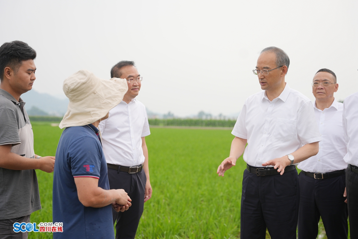黄强在开江县普安镇新河村,察看成渝现代高效特色农业带合作示范园区规划建设情况,了解稻渔共生、高产技术等助农增收成效。