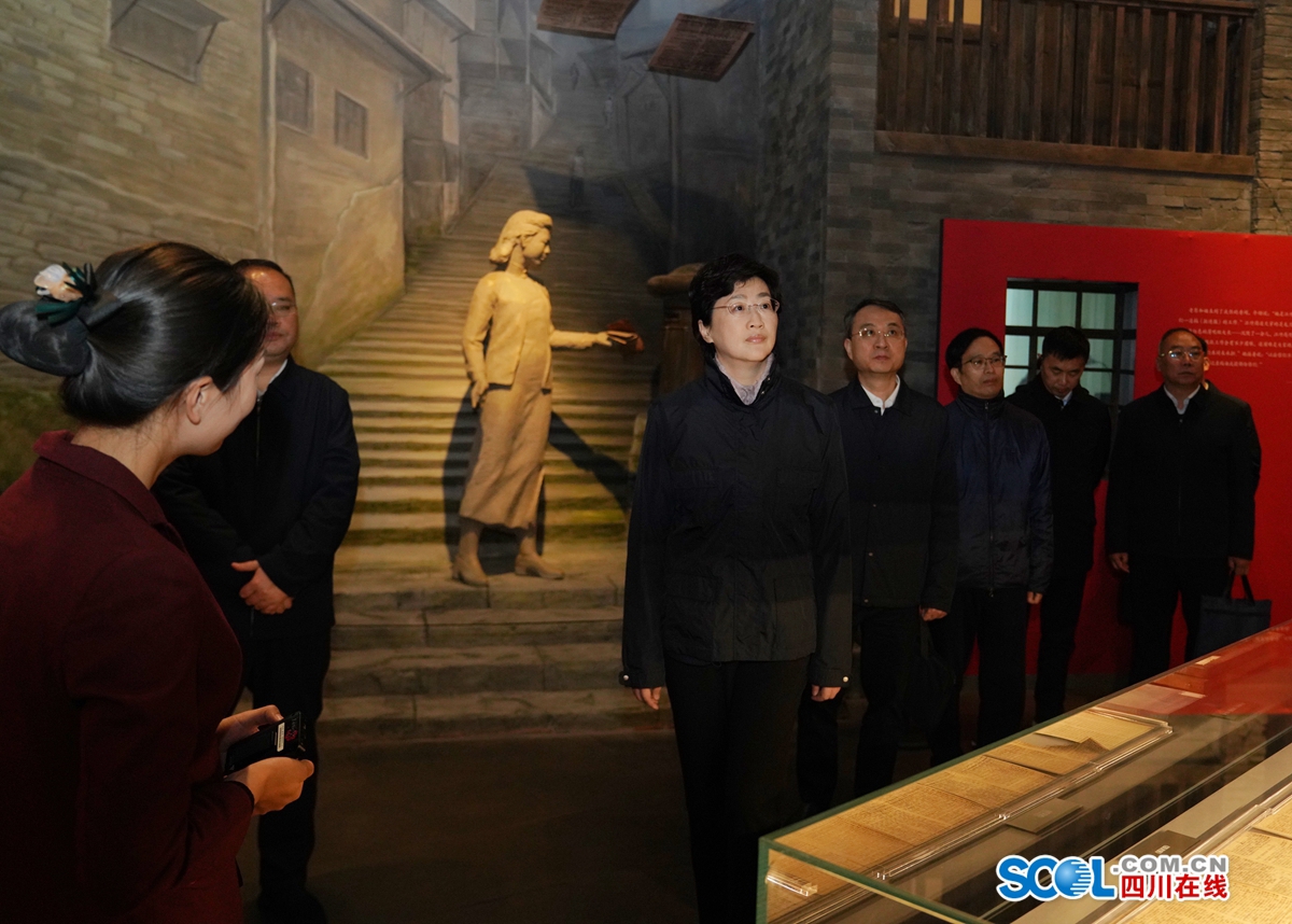 施小琳在江姐故里红色教育基地,调研红色文化传承和红色资源保护利用情况。