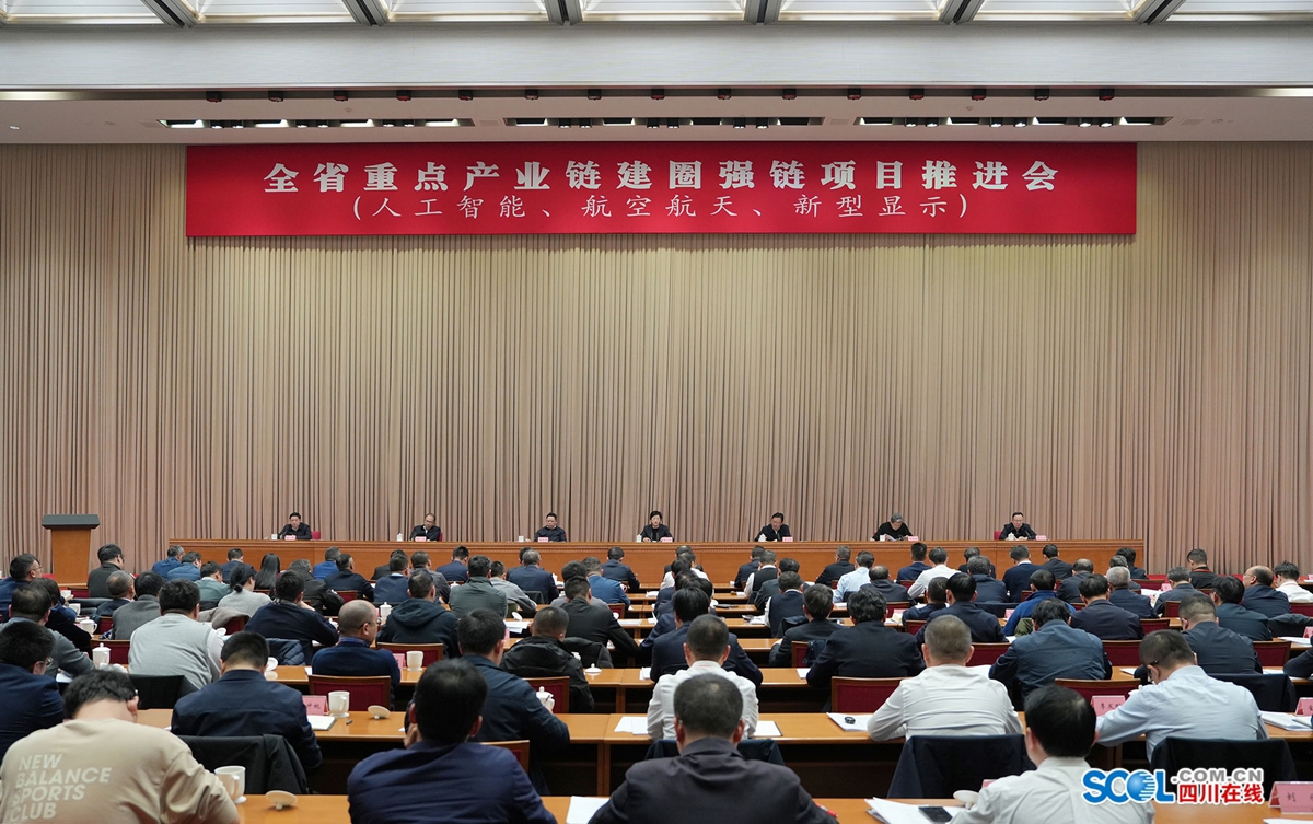省委常委、常务副省长董卫民主持会议,副省长杨兴平、田庆盈、胡云、李文清和成都市市长王凤朝出席会议。会议分现场调研和集中会议两个环节,集中会议以视频形式开到各市(州)和50个工业强县(市、区),并在成都同步举行现场交流活动。会上,人工智能、航空航天、新型显示三条产业链链长办汇报工作推进情况,链主企业和中试平台、产业基金代表发言,相关部门对企业提出的问题作回应发言。