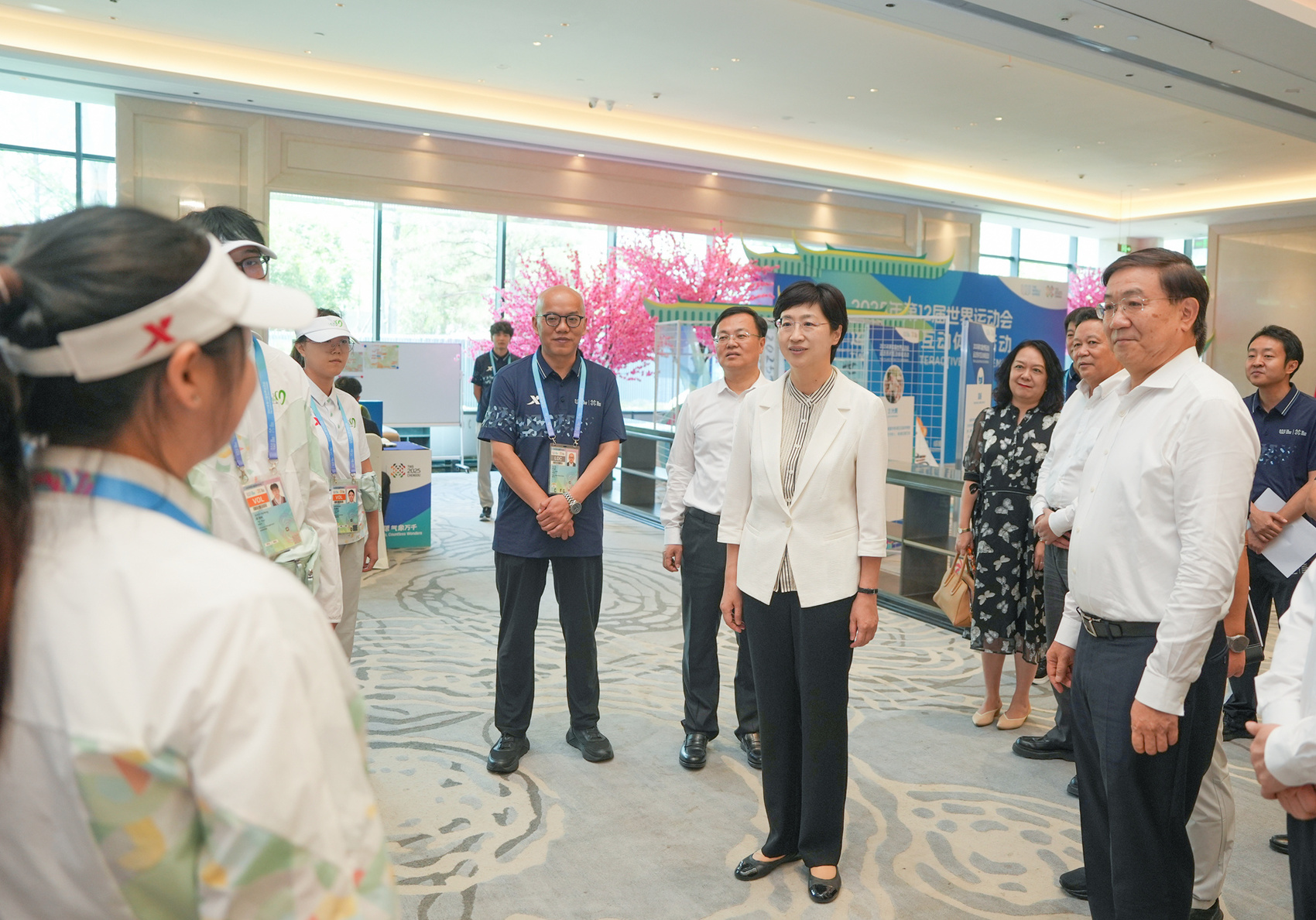 施小琳到省低空空域运行服务中心、世运会主媒体中心、世运村A区,察看了解低空空域安全管理、媒体服务及赛事转播、突发事件应对处置,以及运动员住宿、餐饮、生活服务等运行管理情况,并看望慰问志愿者、电力工人、消防救援指战员等,向大家为世运会举办付出的心血与汗水表示感谢。
